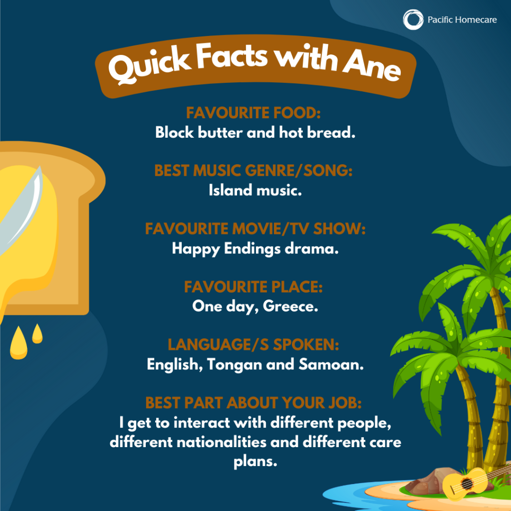 Her passion resonates in the heartfelt feedback from her clients, where Ane sees her role as a chance to bring positive change in their lives. She says, “I love that I get to make a difference in someone else’s life in a small way. Whether it be a cup of tea, a hug, personal care or just a simple smile walking in the door. We take advantage of being young and strong but one day the work we are doing, maybe someone else’s one day when I get to an elderly stage in life”.