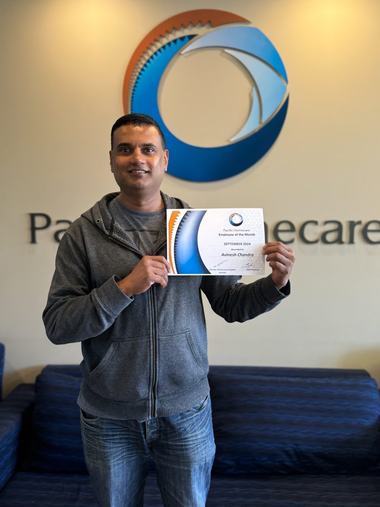 A fellow Support Worker nominated Avinesh Chandra for the September Employee of the Month (EOM), saying, “He is the most hard-working person I have ever worked with. He is willing to do what’s best for the client. He is always on time and focused on what he is doing.” Praised by the Pacific Homecare (PHC) staff for his strong work ethic, time management, and willingness to go above and beyond for his clients, we are happy to have commended such a person as our EOM.