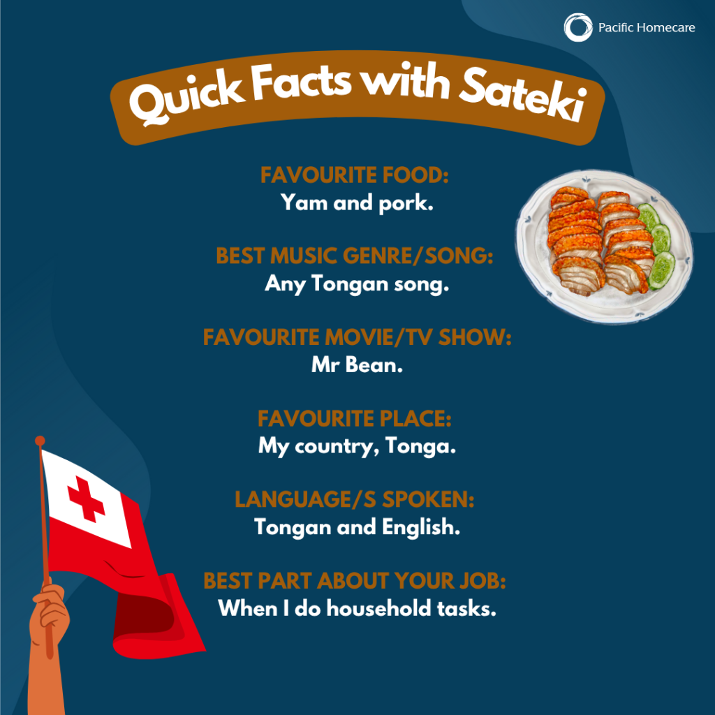 Support Worker and Pacific Homecare’s July Employee of the Month, Sateki, has consistently demonstrated dedication to his role. His excellent communication skills make him a valued team member, as he takes the time to listen and respond to the needs of both staff and customers at Pacific Homecare. Sateki joined us from Tonga in December 2023, after being successful in the Pacific Access Category. At 43 years old, Sateki is a proud Tongan, happily married, and blessed with four children. He is known for going above and beyond to ensure that everyone receives the assistance they need, making a significant impact on the lives of those he serves. He says, “I work at Pacific Homecare, and my role is to support elderly people who need help. I assist with personal care, encouragement, and everyday tasks. I do my work with love, respect, and care for the people we support.” In addition to his professional skills, Sateki is recognised for his respectful and polite nature. His positive attitude and willingness to help create a supportive environment that benefits both staff and clients.